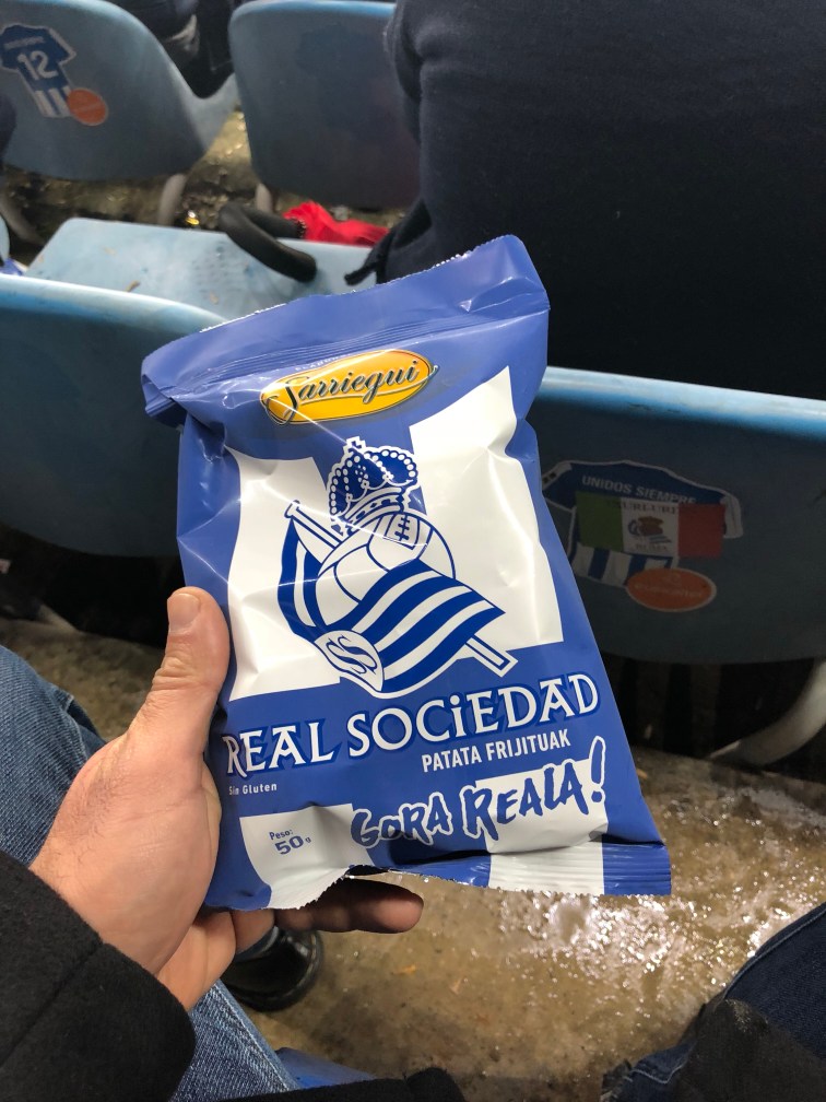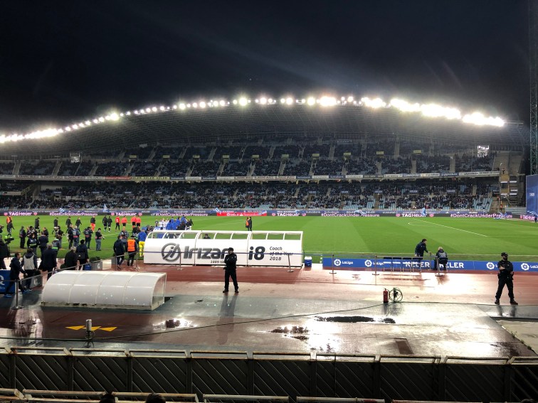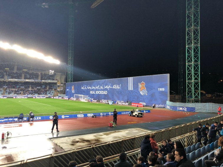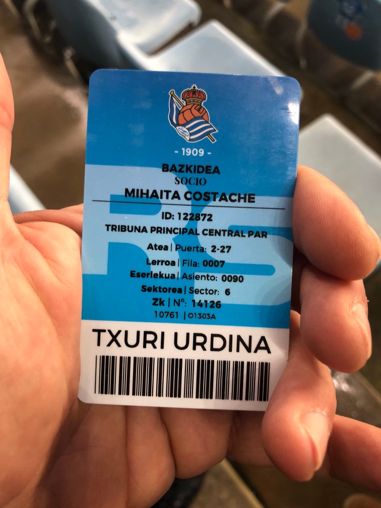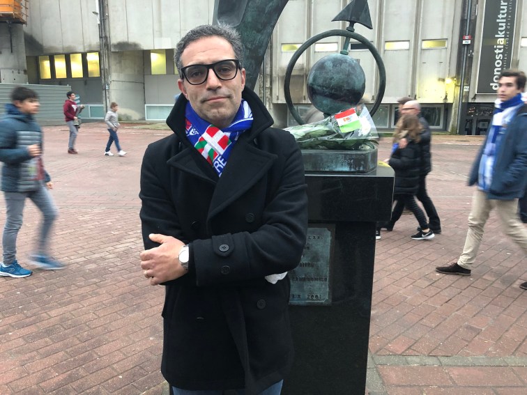 Sono le quattro e mezza del pomeriggio e decido di avviarmi a Anoeta per vedere la partita tra la mia amata Real e il Celta. Veniamo da un brutto periodo, 17 partite e soltanto 3 vittorie per i txuriurdin. Partiti con ben altri obiettivi, la squadra guidata da Eusebio Sacristán sta prendendo molto terreno in classifica. Nonostante tutto Dino fiducioso oggi. Prendo il bus numero 28 dalla Calle Urbieta dove risiedo normalmente quando vengo a San Sebastián con la mia famiglia. Neanche 10 minuti e arrivo a destinazione. Mi faccio un giro nelle vicinanze dello stadio per vedere come vanno i lavori di ristrutturazione. Dopo di che una visitina all’interno del negozio della Real dove provo senza fortuna di salutare la mia amica Ane. A questo punto sono le 1730 e mi reco come d’accordo all’appuntamento con gli amici del club Maite Taldea per incontrare e conoscere David. Giunto al bar faccio subito la conoscenza di vari soci della Peña e noto immediatamente il mio adesivo attaccato sulla vetrata del locale. Tutti molto simpatici e accoglienti. Mi sommergono di domande sul perché del mio amore per la Real e del mio legame con San Sebastián. Mentre mi scolo mia seconda birra, arriva finalmente David. Entriamo subito in sintonia. Gli porgo il mio regalo, una squadra di Subbuteo della Real dipinto a mano, che viene calorosamente accolto quasi come fosse il sacro Graal. In cambio ricevo la sciarpa della Peña è un abbonamento per entrare allo stadio. A prestármela è Miha, un simpatico rumeno che da 12 anni vive a Donosti, e che si è innamorato della Real. Dopo aver terminato le birre ci rechiamo alla partita, ma prima di entrare omaggio il la scultura del compianto Aitor Zabaleta con un piccolo mazzo di fiori. Pochi minuti dopo siamo all’interno di Anoeta. Il mio posto in tribuna è fantastico. Ho una perfetta visuale del campo. Lo stadio è quasi gremito. La fiducia è tanta, ma anche la paura di sbagliare lo è… sappiamo tutti come è andata a finire… Sinceramente mi auguravo di portare fortuna con la mia presenza. Speravo in una vittoria scaccia crisi… purtroppo non è andata così… Il vento dovrà cambiare prima o poi. Nonostante la sconfitta, torno a Roma con il ricordo di una Donosti sempre accogliente e con la Real nel cuore. Aupa la Real!