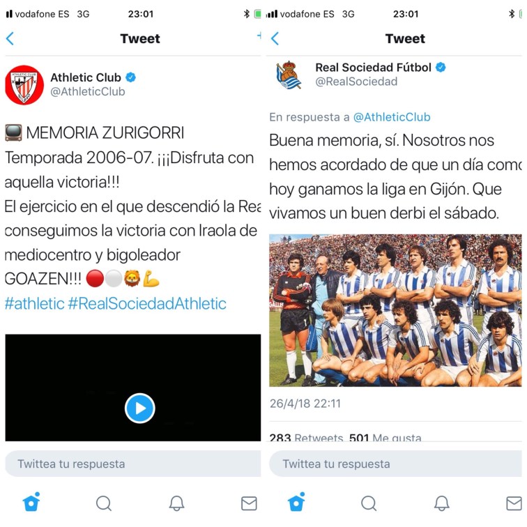 Ormai manca soltanto un giorno al tanto agognato derby che vedrà la nostra amata Real Sociedad confrontarsi contro l’Athletic domani ad Anoeta. L’attesa è quasi spasmodica, soprattutto per quanto riguarda il ‘ritorno’ a Donosti di I. Martinez, considerato dalla quasi totalità della tifoseria txuriurdin come un traditore. Sulla carta lo è. Nonostante fosse uno dei capitani, il bizkaino cresciuto a Zubieta, ha lasciato la casa madre durante l’ultimo giorno di mercato per coronare il proprio ‘sogno’ di giocare con la casacca zurigorri. Avrebbe potuto aspettare il termine della stagione, anche perché la Real stava attraversando un periodo molto brutto, ma niente da fare. Il ‘dio’ denaro ha vinto anche questa volta. La ‘rata’ così ribattezzato dalla tifoseria txuriurdin, sarà ricevuta da migliaia di banconote da 10 euro recanti la sua faccia… Ma questa non è certamente una iniziativa presa dalla società, ma una iniziativa privata. Insomma tutto il contrario di ciò che ha pubblicato l’account twitter ufficiale dell’Athletic Club che per aizzare gli animi per il derby ha evidenziato una loro vittoria nell’anno della retrocessione della Real Sociedad… Insomma una vera e propria caduta di stile… Proprio per questo spero che i ragazzi domani ce la mettano tutta, e concludano questa insulsa stagione con una vittoria! Aupa la Real!