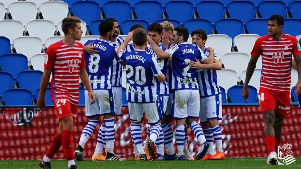 Partita contestata dal Granada già 24 ore prima del suo inizio, a causa delle moltissime assenze dovute alla positività di molti giocatori del club andaluso. I bianco rossi dopo un iniziale rifiuto di giocare il match, sono arrivati in terra basca con la formazione primavera. Una formazione che nonostante il divario, ha tenuto molto bene il campo. Naturalmente la partita è stata a senso unico. La Real perennemente in attacco, e i giovani del Granada a difendere. I txuriurdin vanno in vantaggio grazie a Nacho Monreal, raddoppiano con Mikel Oyarzabal su calcio di rigore, e ne sbagliano un altro con Willian José. Nel finale una grave disattenzione della difesa della Real, con le Normande che mette giù un giovane del Granada, e viene espulso. Al termine del recupero rigore inesistente concesso al Granada, per un presunto fallo di Silva, che però Remiro para. Ora la pausa per le nazionali. Aupa la Real!
