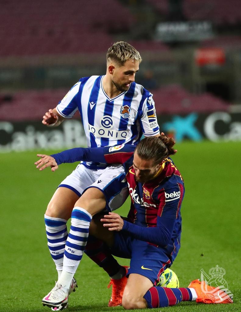 Alla fine, dopo 9 risultati utili consecutivi, la Real cede al Camp Nou, il maledetto Campo Nou, dove non vince dal lontano 1991. Un primo sofferto, in balia degli attacchi furibondi dei blaugrana. Ma è la Real ad andare in vantaggio con Willian Josè. La gioia però non dura neanche 4 minuti, e il Barcellona pareggia grazie ad una straordinaria rete di Jordi Alba. Nel secondo tempo gli uomini di Alguacil entrano in campo più agguerriti, e piano piano iniziano a macinare gioco, e occasioni. Purtroppo però De Jong riporta in vantaggio gli azulgrana. La Real però ci crede, ed è solo a Ter Stegen che riesce in più occasioni a salvare la porta e il risultato. Una sconfitta contro il Barcellona ci sta pure, ma è un peccato, perché nonostante le assenze di Oyarzabal e Silva, assenze molto pesanti, gli uomini, anzi i ragazzi, vista la bassissima età media in campo, hanno tenuto testa a Messi e compagni. Mr Alguacil ha anche il coraggio di fare debuttare il giovane Navarro. Arbitraggio scandaloso da parte di Sanchez Martinez, Jordi Alba vergognoso, quasi quanto il peggior Raul Garcia. Januzaj infortunato. Aupa la Real!