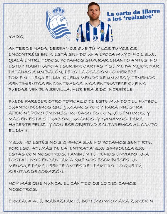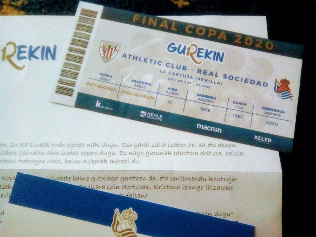 La Real, attraverso le parole del proprio capitano, Asier Illaramendi, ha fatto arrivare a tutti i propri abbonati, oltre 35mila, una lettera nella quale si esprime il rammarico che non possano assistere alla finale di Coppa del Re, che si disputerà il prossimo 4 aprile a Siviglia, contro l’Athletic di Bilbao. La causa della mancanza di pubblico, come tutti noi sappiamo, è dovuta all’emergenza sanitaria scatenata dal COVID 19. All’interno del plico, anche un fac simile del biglietto della finale.