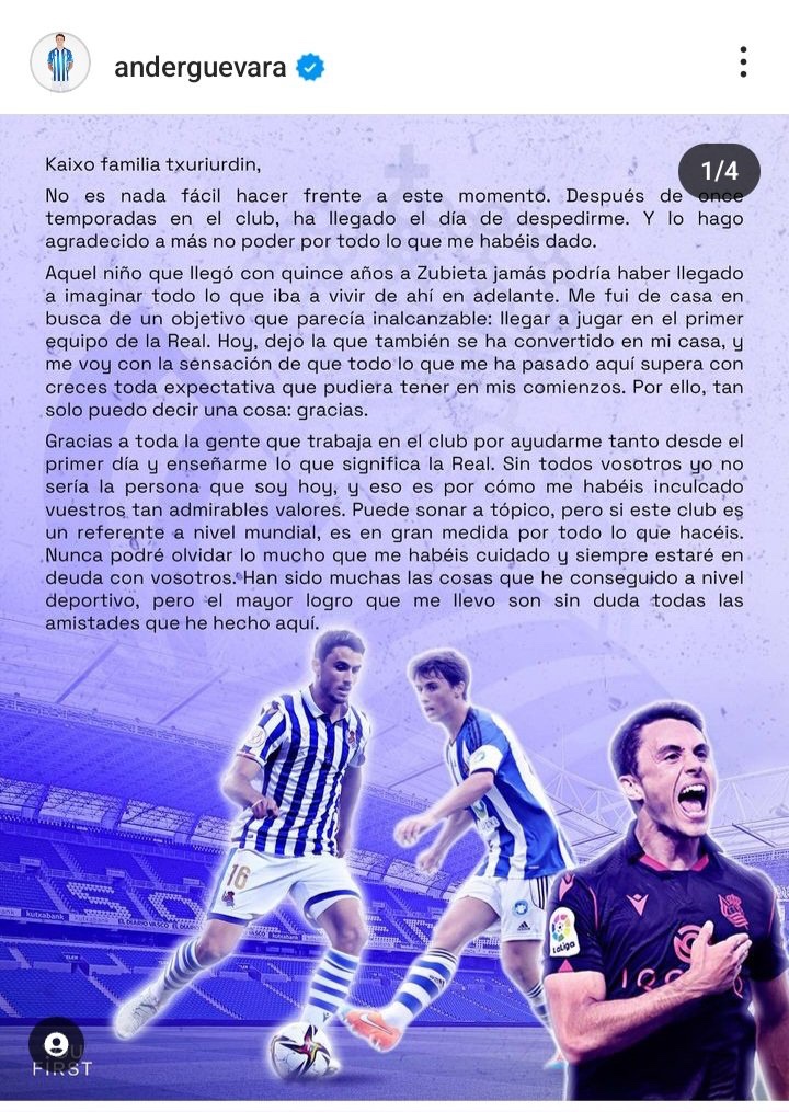 La Real ha annunciato il passaggio di Ander Guevara al Deportivo Alavés. In un certo senso un vero e proprio ritorno a casa per il gateiztarra. Ander ha firmato un contratto di 4 anni che lo legherà al Glorioso fino al 2028. Molti gli anni passati nella Real tra giovanili e prima squadra. Forse non ha avuto molte chances per dimostrare il proprio valore. Sicuramente un professionista esemplare. Zorte on eta eskerrik asko!