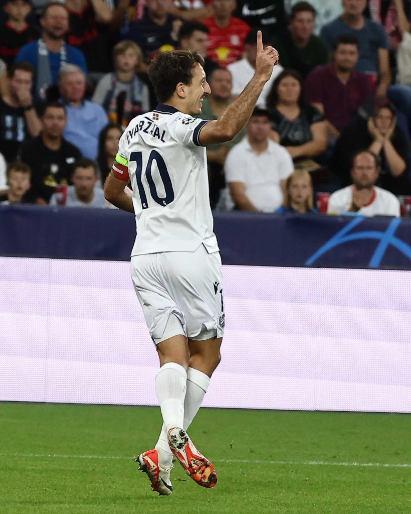 Importantissima vittoria della Real in Champions sul campo del Red Bull Salisburgo grazie ad un grande primo tempo. Un primo tempo nettamente dominato dagli uomini di Alguacil che vanno a segno prima con capitan Oyarzabal che pare ormai tornato ai tempi d’oro, e poi con Brais Mendez autore di un super gol in contropiede. Nel secondo tempo la Real riesce a controllare bene la partita. Rigore prima concesso e poi giustamente tolto agli austriaci. Con questa vittoria i txuriurdin si portano a 4 punti e primi in classifica, in attesa del match tra Inter e Benfica. Aupa la Real!