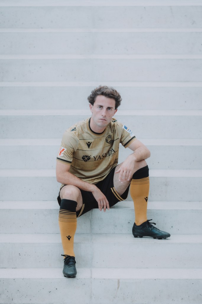 E’ stata presentata oggi la nuova seconda maglia della Real dedicata al ‘futbol playa’ che tanto caratterizza i tornei calcistici che si disputano sulle spiagge non solo di San Sebastian, ma di tutta la Gipuzkoa! Di colore dorato scuro che ricorda la sabbia, e con sottili strisce di colore nero, la nuova seconda divisa, da un tocco di eleganza e raffinatezza. Nella trama della maglia, chiari riferimenti alla struttura metallica dello stadio di Anoeta. Aupa la Real!