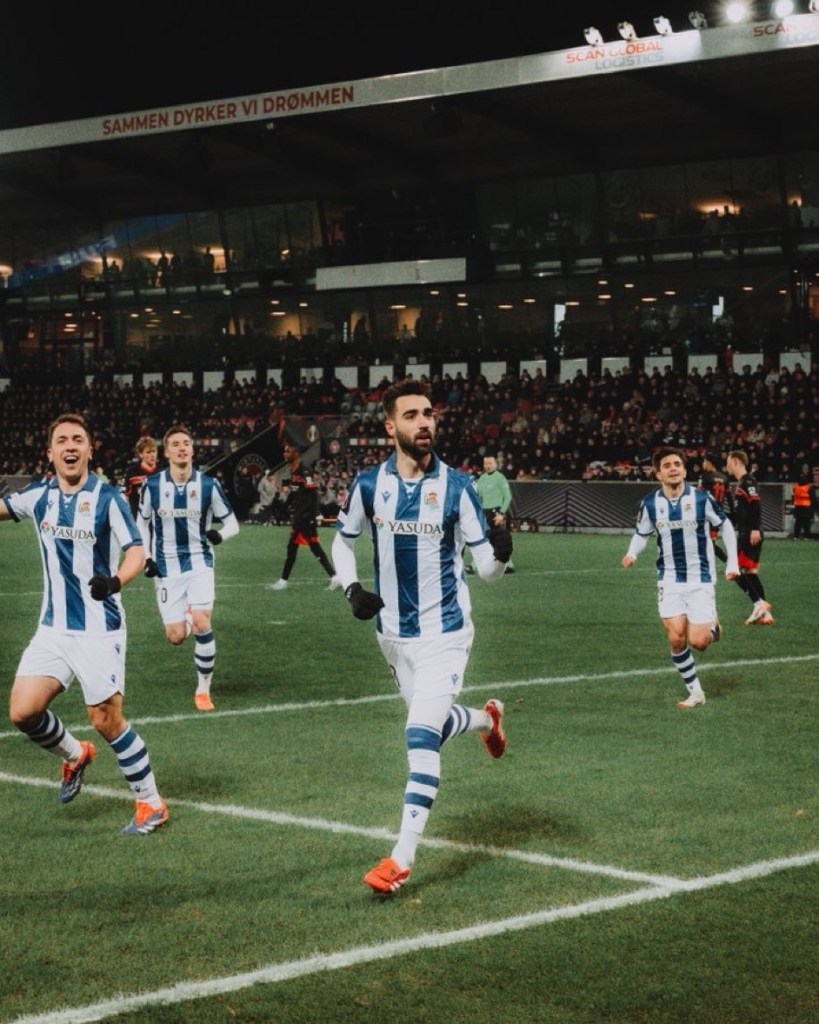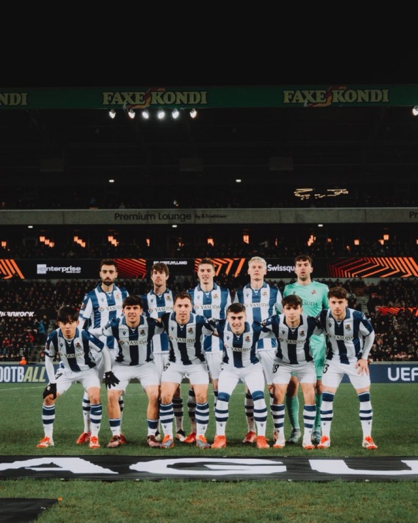 Una Real non bella ma pragmatica, porta a casa una vittoria fondamentale. Imanol schiera un undici imbottito di potrillos come Balda, Marin e Marrero, con molti senatori in panchina. E anche questa volta bisogna dargli ragione. Nonostante il possesso palla, e il bel gioco dei danesi, gli uomini di Alguacil, grazie al già citato pragmatismo, sbancano Herning. Le reti txuriurdin entrambe nel primo tempo. Prima Brais Mende su calcio di rigore, e poi Take Kubo autore di un gol bellissimo. La gara di ritorno non sarà facile nonostante la vittoria. La squadra danese gioca un buon calcio, e ha ottime individualità. Anoeta dovrà essere una bolgia. Onore ai tifosi txuriurdin presenti.