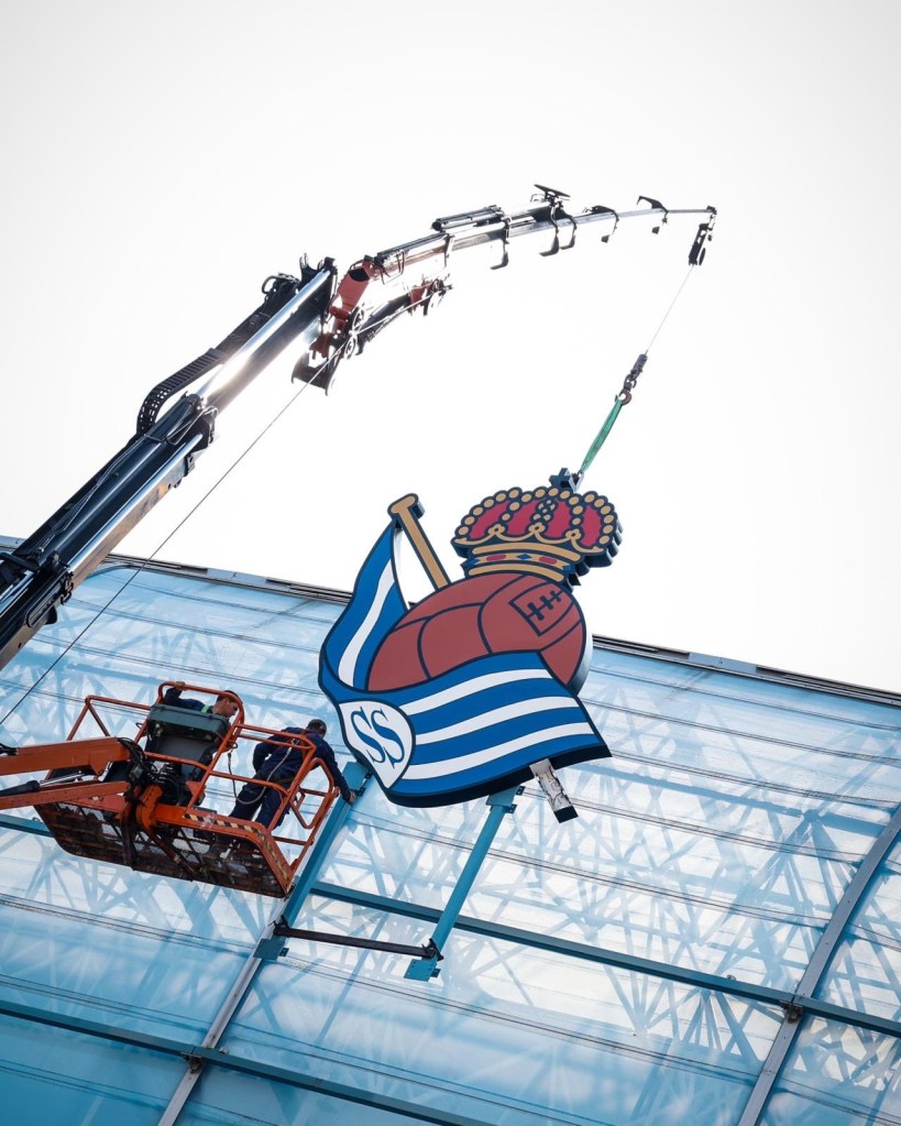 Alla fine, dopo non so quanti anni, lo stemma della Real trova il suo posto ad Anoeta. Ho sempre pensato in quanto fosse uno stadio cosiddetto ‘comunale’, lo stemma non potesse essere collocato. Invece alla fine, così all’improvviso, ha finalmente trovato posto. Sinceramente mi aspettavo qualcosa di più grande… Pare che sotto verrà messa anche una scritta. Spero vivamente qualcosa come: Real Sociedad. Staremo a vedere. Comunque si dovrebbe rifare anche la copertura… Pare un telo per coprire i lavori in corso.