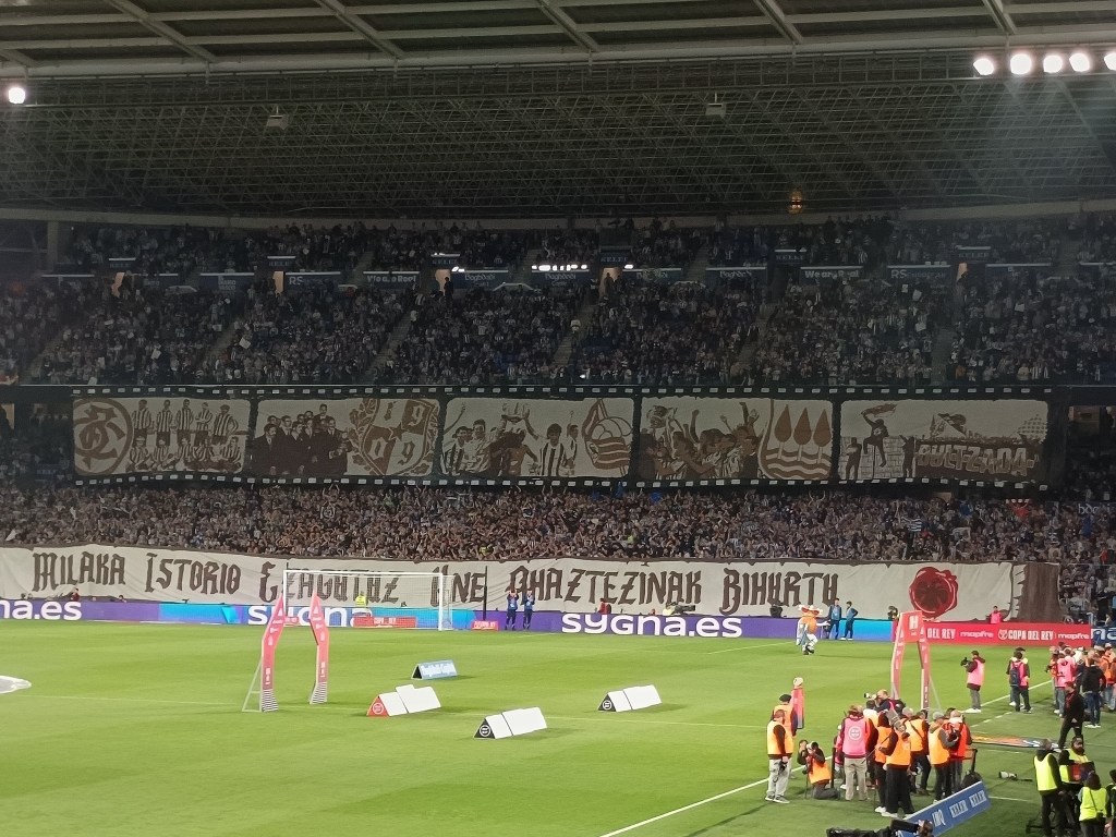 Ebbene sì siamo in finale!!! Dopo aver vinto all’andata, la Real si ripete anche nel ritorno in un’Anoeta stracolmo, grazie ad una rete di Mikel Oyarzabal su calcio di rigore al minuto 88. Dicevamo una vittoria tutt’altro che facile, molto equilibrata e combattuta, ma con pochi tiri in porta. Gli uomini di Matarazzo non rischiano molto, anzi riescono a reggere senza troppi problemi gli attacchi spesso sterili dell’Athletic. Nel finale del match anche un palo del neo entrato Oskarsson. Grande atmosfera, quasi infernale prima della partita nello spazio adiacente Anoeta, con migliaia di tifosi che hanno accolto e letteralmente accompagnato la squadra dentro lo stadio. Grandissima cornice di pubblico all’interno, con oltre 38mila spettatori. Ennesima bellissima coreografia (1500 bandiere txuriurdin) di Bultzada che ricordava le vittorie della Real in Copa del Rey, e mosaico d’impatto nel resto dello stadio. Ad attenerci alla Cartuja il prossimo 18 di aprile ci sarà l’Atletico Madrid dell’ex Griezmann. Non sarà facile, ma questa Real ci sta abituando a grandi cose.