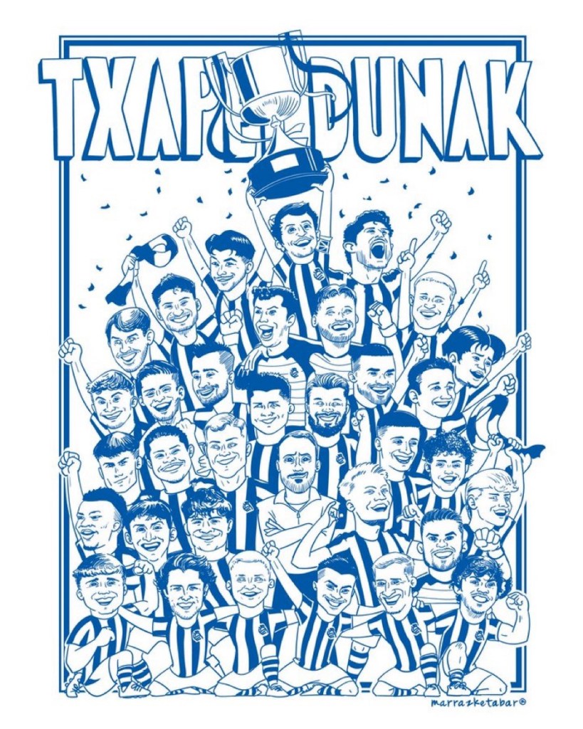 In una cornice spettacolare nello stadio de la Cartuja di Siviglia, con la presenza di oltre 27mila tifosi txuriurdin, la Real Sociedad mette anima e cuore, andando in vantaggio per ben due volte, prima dopo appena 24 secondi con una splendida azione corale, con cross di Guedes per la testa di Ander Barrenetxea, e poi con un rigore di capitan Oyarzabal. Purtroppo per ben due volte i colchoneros la riprendono, prima con Ademola Lookman, e poi con Julian Alavarez a 7 minuti dal termine del match. Non bastano neanche i supplementari a decidere il risultato finale, e si va ai calci di rigore, da sempre un terno all’otto. Ed è qui che la Real, grazie ad un incredibile Unai Marrero che ne para (ancora) due, e Pablo Marin che segna quello decisivo, (entrambi Made in Zubieta come il 60% della rosa), vince la sua quarta Copa del Rey della sua storia! Unai Marrero premiato come MVP non è più una sorpresa, ma una solida certezza per il futuro della porta txuriurdin. Una sorta di nuovo Arconada, che proprio sulle orme del mitico portiere donostiarra, porta in trionfo la Real contro l’Atletico Madrid come nel 1987. Per concludere un grande ringraziamento a Mr Pellegrino, ‘Rino’ Matarazzo, vero artefice di questo incredibile successo. Subentrato a Sergio Francisco pochi mesi fa con una Real in zona retrocessione, l’americano di origini italiane, da nuova linfa vitale alla squadra, e la porta a lottare per l’Europa, e infine a vincere la Copa del Rey 2026!